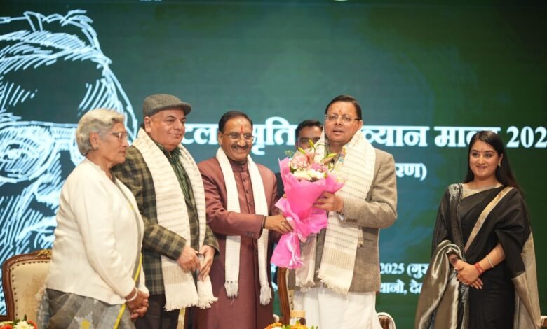 मुख्यमंत्री पुष्कर सिंह धामी ने गुरुवार को लेखक गॉव थानो, देहरादून में भारत रत्न अटल बिहारी वाजपेयी की जयन्ती के अवसर पर आयोजित अटल स्मृति व्याख्यान माला-2025 कार्यक्रम में प्रतिभाग किया। इस अवसर पर मुख्यमंत्री ने अटल प्रेक्षाग्रह का भी लोकार्पण किया।