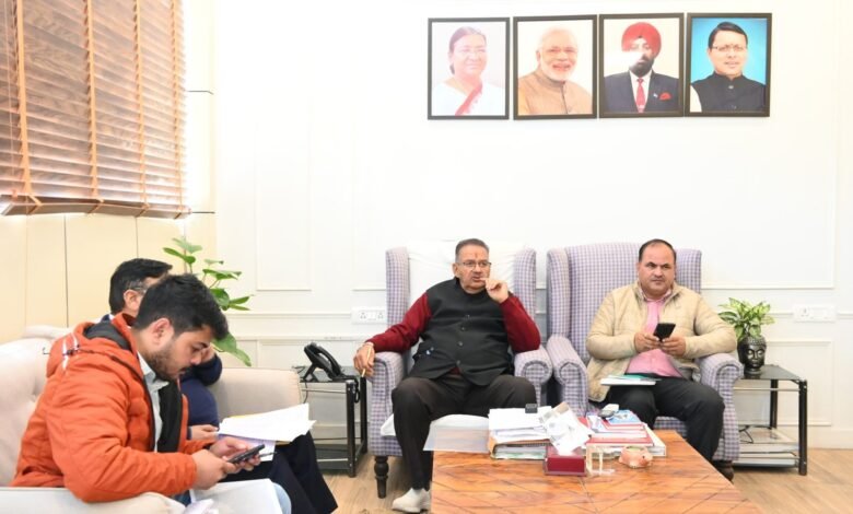 मसूरी विधानसभा क्षेत्र में चल रहे विकास कार्यों और क्षेत्र में आपदा के पुनर्निर्माण कार्यों समीक्षा करते कैबिनेट मंत्री गणेश जोशी