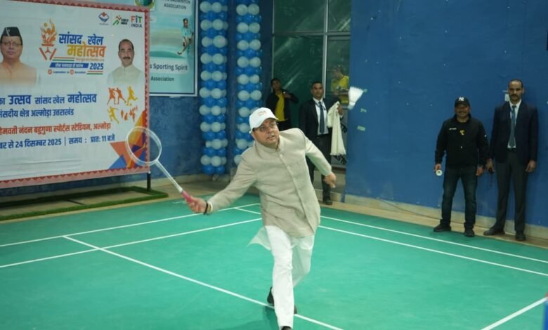 मुख्यमंत्री पुष्कर सिंह धामी ने सोमवार को अल्मोड़ा में सांसद खेल महोत्सव का शुभारंभ किया। कार्यक्रम के दौरान उन्होंने फुटबॉल और बैडमिंटन प्रतियोगिता का उद्घाटन किया तथा अंतरराष्ट्रीय क्रिकेट खिलाड़ी एकता बिष्ट और खेल प्रशिक्षकों को सम्मानित किया।