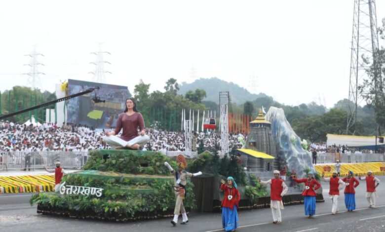 ‘स्टैच्यू ऑफ यूनिटी‘ के सम्मुख एकता परेड में उत्तराखंड की झांकी में राज्य के विभिन्न रूप-रंगों की छटा बिखरी