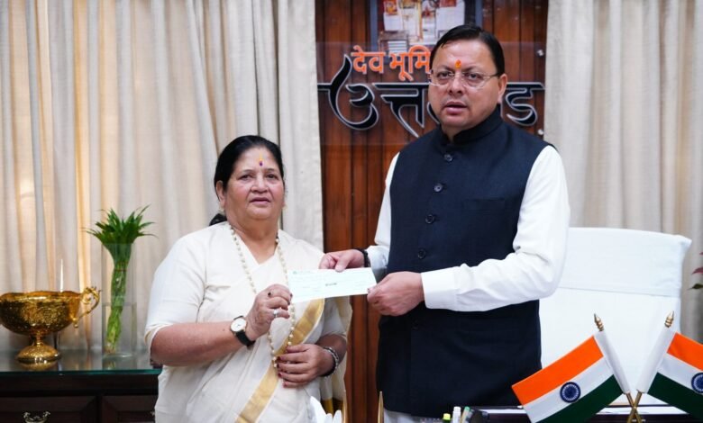 प्रसिद्ध पर्वतारोही एवं पद्मभूषण सम्मान प्राप्त बछेंद्री पाल ने शनिवार को मुख्यमंत्री राहत कोष के लिए 10 लाख रुपए का चेक प्रदान किया। यह चेक उनकी ओर से राज्य महिला उद्यमिता परिषद की उपाध्यक्ष विनोद उनियाल द्वारा मुख्यमंत्री को सौंपा गया।